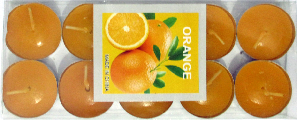 Get your scented orange colored candles with metal base, a set of 10 candles for your decoration.